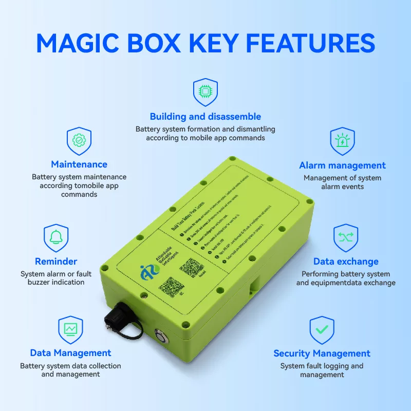 Equipped with super security, each magic battery comes with a built-in BMS. The BMS system will monitor the entire modular battery, and any potential risks detected can be communicated to the operator through a need alarm system. The app also has a remote monitoring capability, allowing you to view all battery information anytime.